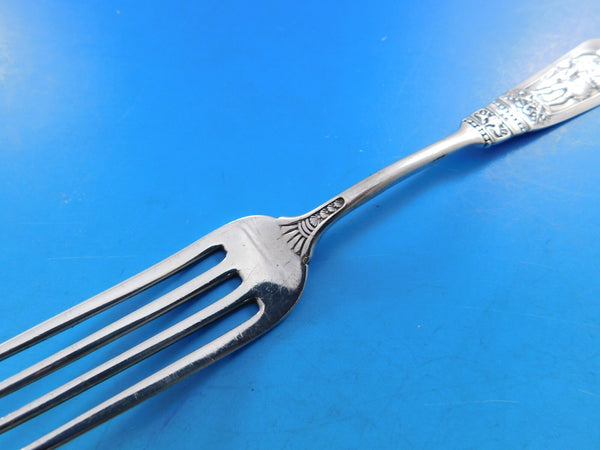 Sterling silver Tea Fork 5 7/8" in the multi-motif pattern Fontainebleau by Gorham. It is monogrammed (monos vary) and is in good vintage condition with some tine wear, as shown.