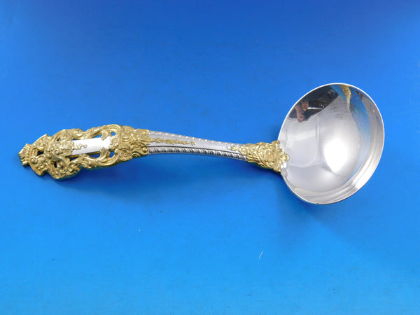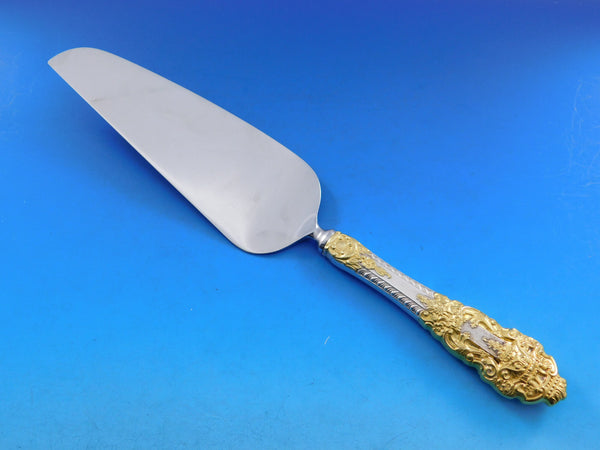 Dinner size Golden Crown Baroque by Gorham sterling silver with gold accent Flatware set - 53 pieces. This pattern is large, heavy, and impressive. This set includes: