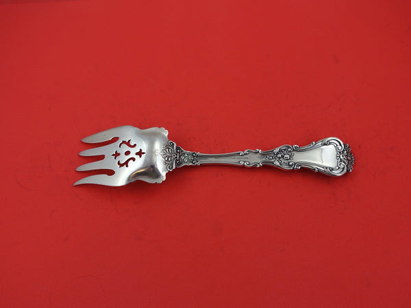 Sterling silver Cold Meat Fork, pierced with light gold wash 8 1/2" in the pattern Henry II by Gorham. It is monogrammed (monos vary) and is in excellent condition.