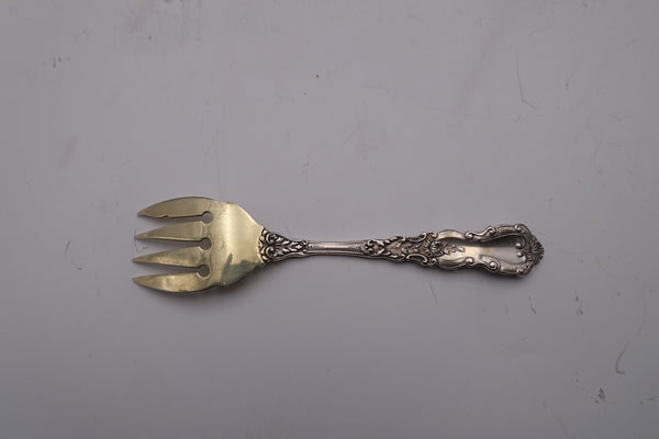 Sterling Silver Sardine Fork, gold washed 5 1/2" in the pattern Imperial Chrysanthemum by Gorham. It is monogrammed (monos vary) and is in excellent condition.
