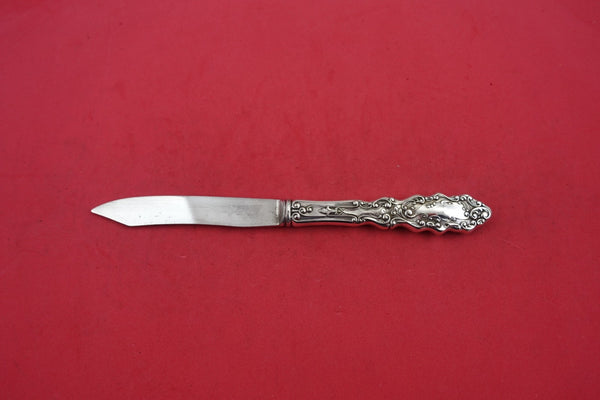 Sterling Silver Fruit Knife, hollow handle with silver plated blade 7" in the pattern Luxembourg by Gorham. It is monogrammed (monos vary) and is in excellent condition.