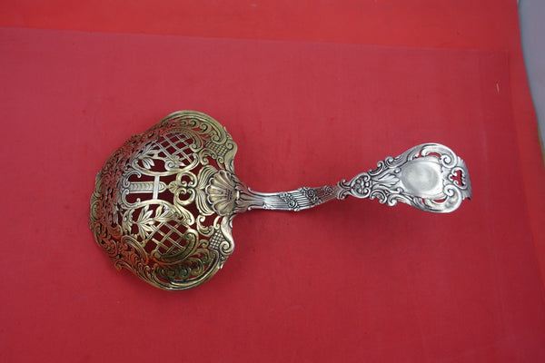 Sterling silver BonBonniere Spoon light vermeil with art nouveau woman, massive wt 10.5 ozt with dolphins and north wind, 11" in the pattern Strasbourg by Gorham. It is not monogrammed and is in excellent condition.