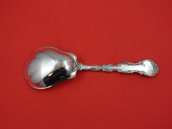 Sterling silver Berry Spoon with plain shoulders 8 7/8" in the pattern Strasbourg by Gorham. It is not monogrammed and is in excellent condition.