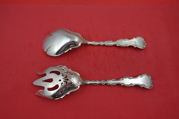 Sterling silver Salad Serving Set with applied lacing, and pierced fork 8 3/4" in the pattern Strasbourg by Gorham. It is monogrammed (monos vary) and is in excellent condition.