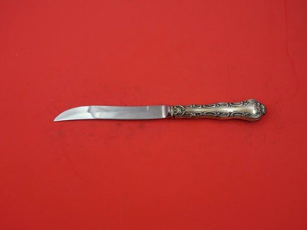 Sterling silver hollow handle with stainless implement Steak Knife, original with bevel blade 8 3/8" in the pattern Strasbourg by Gorham. It is not monogrammed and is in excellent condition.