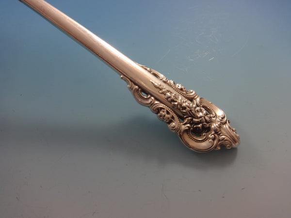 Monumental GRANDE BAROQUE BY WALLACE sterling silver Flatware set - 116 Pieces. This set includes:18 KNIVES w/stainless blades, 8 7/8" 18 FORKS, 7 1/2" 18 SALAD FORKS, 6 5/8" 18 TEASPOONS, 6 1/4" 18 CREAM SOUP SPOONS, 6" 18 HOLLOW HANDLE BUTTER SPREADERS w/stainless blades, 6 1/4" 1 GRAVY LADLE, 6 5/8" 2 SERVING SPOONS, 8 3/4" 1 PIERCED SERVING SPOON, 8 3/4" 1 SUGAR SPOON, 6 1/4" 1 SALAD SET, ALL-STERLING, 9 3/8" 1 TOMATO SERVER, 8 1/8" Includes bonus brand new storage chest - styles vary.