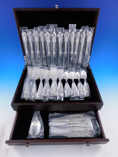 Our best selling pattern! Gorgeous unused Grande Baroque by Wallace sterling silver Flatware set, 61 pieces. This set includes: