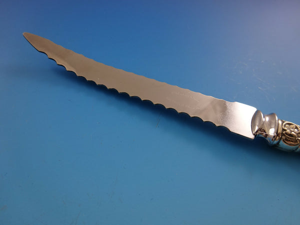 Sterling silver hollow handle Grapefruit Knife, 7 1/4", with sharp double sided serrated stainless blade custom made in the pattern Grande Baroque by Wallace. It is not