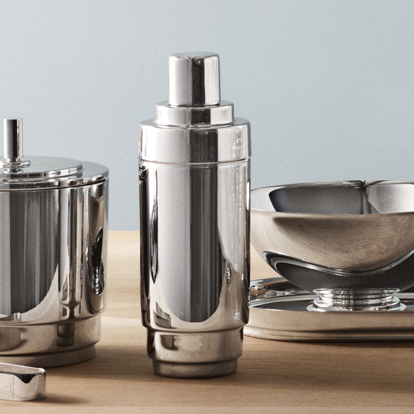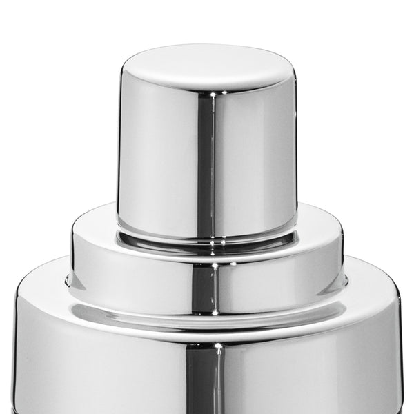 The cocktail shaker is expertly crafted in stainless steel with a gleaming mirror-polished surface.