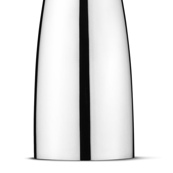 This handsome salt and pepper set is a masterclass in minimal restraint. All unnecessary decoration has been removed leaving just the beautiful organic shape rendered in high shine stainless steel. Form and function are in perfect equilibrium as the shakers work ergonomically in the hand and the adjustable 'All-Grind - Ceramic technology' used in the mechanism creates the perfect grain size.