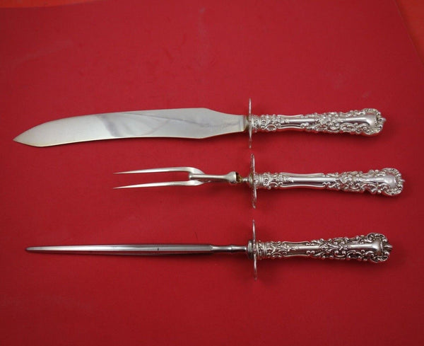 Sterling silver hollow handle with stainless implements Roast Carving Set 3-Piece in the pattern Avalon by International. It is not monogrammed and is in good estate condition.