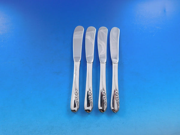 Set of 8 sterling silver flat handle Butter Spreaders with stainless paddle blades, 6", in the pattern Blossom Time by International. They are not monogrammed and are in excellent condition.