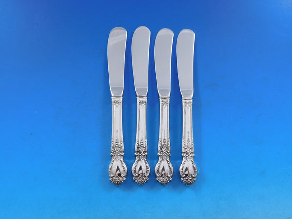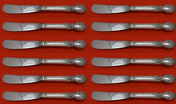 Set of 12 sterling silver hollow handle Butter Spreaders with stainless paddle blades 6", in the pattern Brocade by International. They are not monogrammed and are in excellent condition.