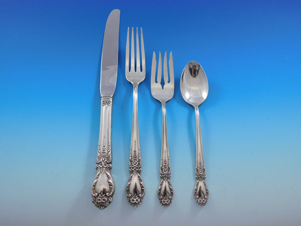 Dinner Size Brocade by International circa 1950 sterling silver Flatware set - 90 pieces, with timeless floral design. This set includes: