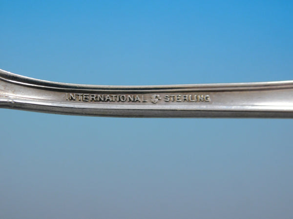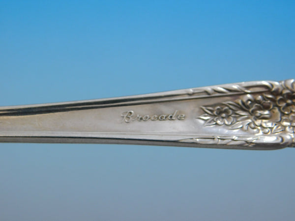 Dinner Size Brocade by International circa 1950 sterling silver Flatware set - 90 pieces, with timeless floral design. This set includes:12 Dinner Size Knives, 9 3/4" 12 Dinner Size Forks, 7 3/4" 12 Salad Forks, 6 1/2" 12 Teaspoons, 6" 12 Cream Soup Spoons, 6 1/2" 12 Hollow Handle Butter Spreaders, 6" 12 Cocktail Forks, 5 1/2" 1 Gravy Ladle, 6 1/2" 2 Serving Spoons, 8 1/2" 2 Cold Meat Forks, 9" 1 Berry Spoon, shell Bowl, 9 1/2" Includes bonus brand new storage chest - styles vary.