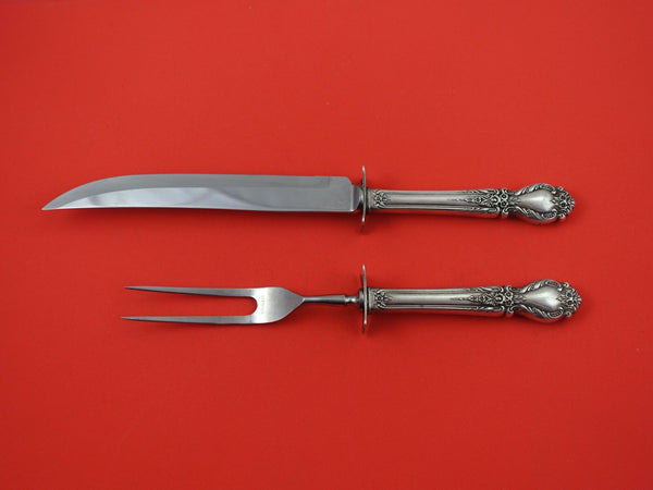 Sterling silver Steak Carving Set, 2 piece, Knife 10 1/2" and Fork 9 1/4" in the pattern Brocade by International. It is not monogrammed and is in excellent condition.