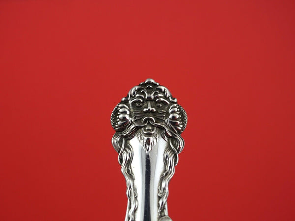 Sterling silver Pea Spoon, with flowers on shoulders 8 3/8" pierced in the pattern Cleone by International. This pattern is based off of classical Greek mythology, where Cleone was a river nymph. It is not monogrammed and is in excellent condition.