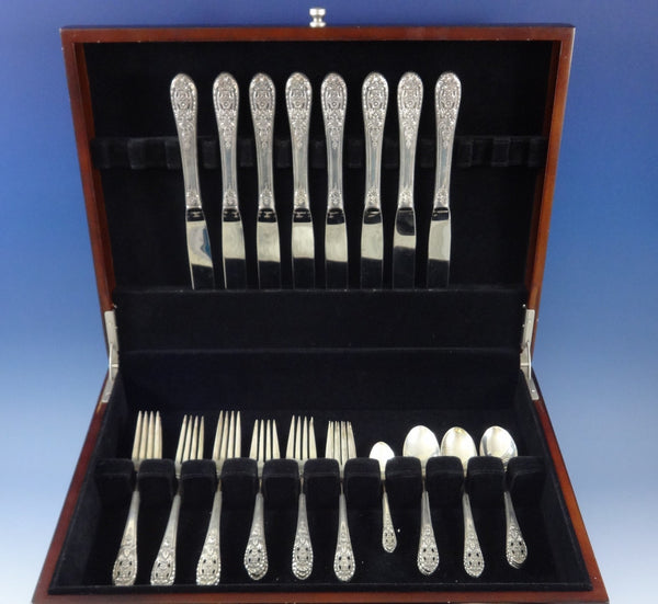 Lovely pierced handle CROWN PRINCESS BY INTERNATIONAL sterling silver Flatware set - 48 Pieces. This set includes: