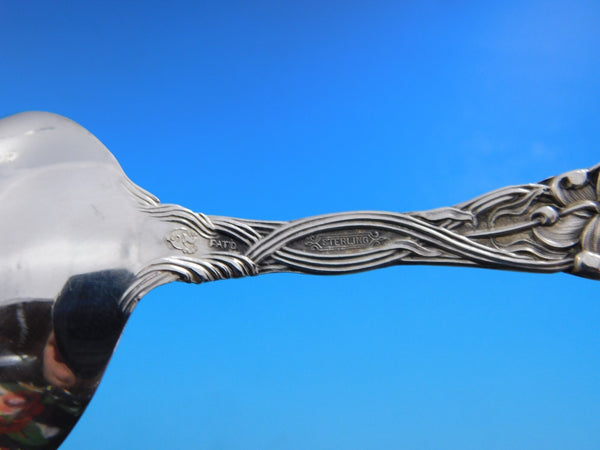 Frontenac by International sterling silver Flatware set - 88 pieces. This pattern was introduced in the year 1903 and features beautiful Art Nouveau lily flowers with leaf detailing that flows down the handle, with more flowers on the shoulders of some pieces including the salad forks and some of the serving pieces. This set includes: