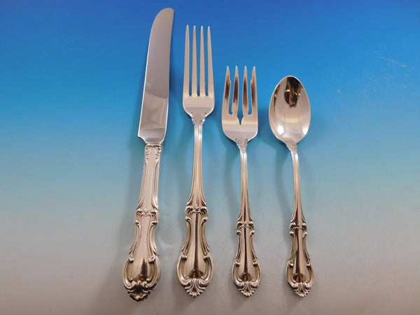 by the designs of the court of Louis XV, this sterling silver flatware
