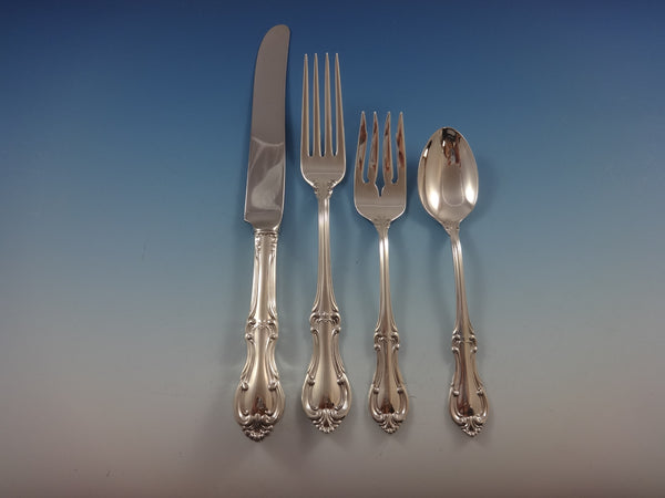 Inspired by the designs of the court of Louis XV, this sterling silver flatware pattern is as heroic and feminine as its namesake. Its traditional curves and contours are restrained by a modern touch, emphasizing the tapered slenderness of the graceful handles. The flatware's rococo scrolls and sculptured shell motif are delicately executed, while its ornamentation is rich and deep on both sides of each exquisite piece.