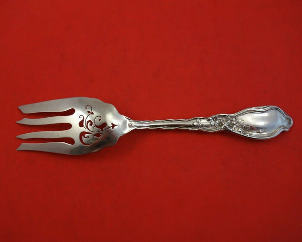 Sterling silver Cold Meat Fork Fancy Pierced 8 5/8" in the multi-motif pattern Mille Fleurs by International. It is monogrammed (although not showing in stock photo/monos vary) and is in excellent condition.