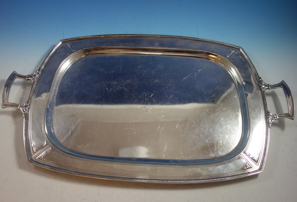 Lastly, the tray that is marked with #5609 weighs 114 ozt., and it measures 28" x 17" x 1". The tray is monogrammed "F" (see photos).