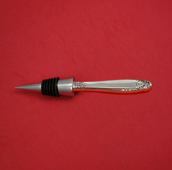 Sterling silver hollow handle with chrome plated implement classic Bottle Stopper, pointed 6 1/2" custom made in the pattern Prelude by International. Food grade, top quality, flexible silicone part keeps wine fresh. It is not monogrammed and is in excellent condition.