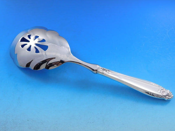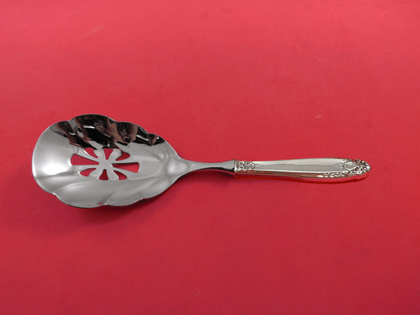 Silver hollow handle with stainless implement Pierced Vegetable Spoon with scalloped bowl, 10",
