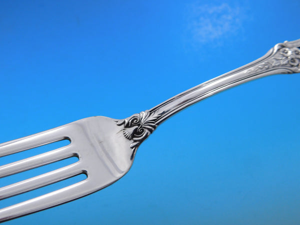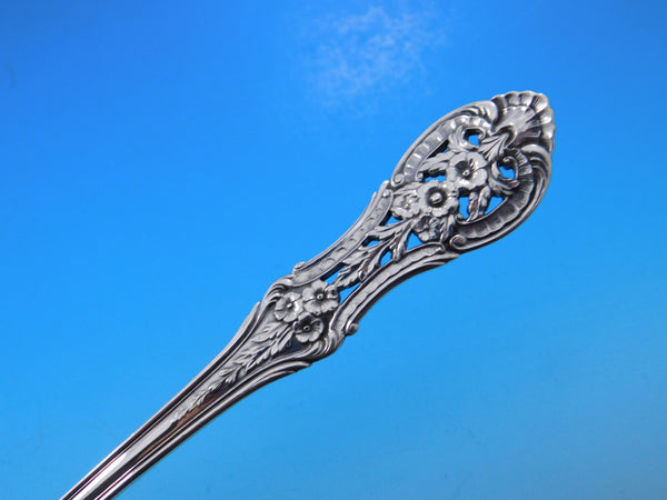 features a pierced, floral design handle, and was introduced in the year