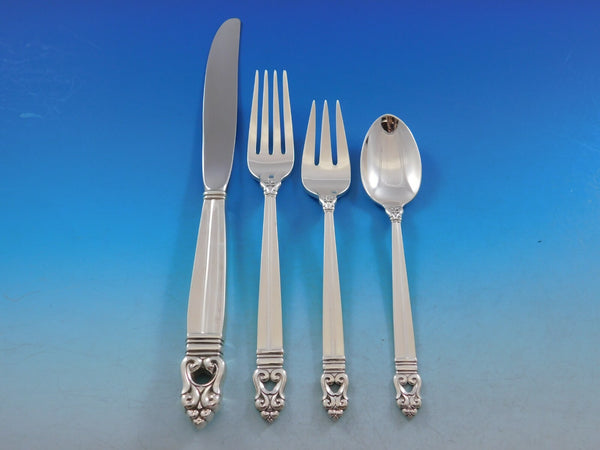 The accent is on form and symmetry in Royal Danish, which takes its influence from the traditional artistry of Scandinavia. Bold openwork reflects this modern interpretation, even on the knife handles. Cut with the clarity of a fine jewel, these pieces are magnificent in weight and style, providing a dramatic accent for any table setting.Monumental Royal Danish by International sterling silver Flatware set - 142 Pieces. This set includes: