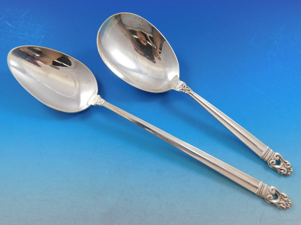 12 Knives, 8 7/8"12 Forks, 7 1/8"12 Salad Forks, 6 3/8"12 Teaspoons, 6 1/8"12 Cream Soup spoons, 6 1/2"12 Place Soup Spoons, 6 3/4"12 Hollow Handle Butter Spreaders, all-sterling, 6"12 Cocktail Forks, 5 1/2"12 Iced Tea Spoons, 7 3/8"12 Ice Cream Forks, 5 3/4"1 Gravy Ladle, 6 1/2"1 Serving Spoon, 8 1/2"1 Pierced Serving Spoon, 8 3/8"1 Cold Meat Fork, 7 3/4"1 Sugar Spoon, 6"1 Hollow Handle Master Butter, 7"1 Pickle Fork, 5 7/8"1 Lemon Fork, 4 3/4"1 Tomato Server, pierced, 7 3/4"1 Nut Spoon, 4 3/4"1 Jelly Server, 6 1/2"1 Berry Spoon, 9 1/8"1 Sugar Tong, 4 1/4"1 Pie Server w/stainless blade, 10 1/4"1 Petit Four Server w/stainless blade, 6"1 Cheese Server w/stainless blade, 6 1/4"1 Hooded Asparagus Server w/stainless blade, 9 1/2"1 Cheese Knife w/pick, 6"1 Olive Spoon, 6"1 Mustard Ladle, 5"1 Twisted Butter Pick, 6"1 Baked Potato Fork, 7 1/4"1 Stuffing Spoon, all sterling, impressive, 12" Estate 2-drawer storage chest is included.
