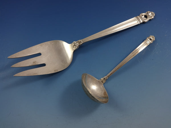 8 KNIVES, 9" 8 FORKS, 7 1/8" 8 SALAD FORKS, 6 3/8" 8 TEASPOONS, 6 1/8" 8 HOLLOW HANDLE ALL-STERLING BUTTER SPREADERS, 6" 1 COLD MEAT FORK, 8 7/8" 1 PICKLE FORK, 3-TINE, 5 7/8" 1 LEMON FORK, 4 3/4" 1 SAUCE LADLE, 5 1/2" Includes bonus brand new storage chest - styles vary.