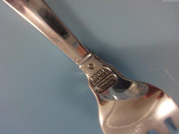 ROYAL DANISH BY INTERNATIONAL sterling silver Flatware set - 64 Pieces. This set includes:8 KNIVES, 8 7/8" 8 FORKS, 7 1/8" 8 SALAD FORKS, 6 3/8" 8 TEASPOONS, 6" 8 CREAM SOUP SPOONS, 6 1/2" 8 HOLLOW HANDLE BUTTER SPREADERS, 6" 8 DEMITASSE SPOONS, 4 1/8" 1 GRAVY LADLE, 6 3/8" 1 SERVING SPOON, 8 1/2" 1 COLD MEAT FORK, 8 3/4" 1 SALAD SET W/WOOD, 11 1/4" 1 PIE SERVER W/STAINLESS BLADE, 10 3/8" 1 SAUCE LADLE, 5 1/2" 1 BERRY SPOON, 9 1/4" Includes bonus brand new storage chest - styles vary.