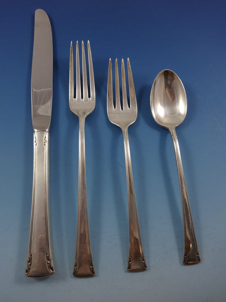 SERENITY BY INTERNATIONAL Sterling Silver flatware set - 36 pieces. This pattern has great form and was designed by the daughter of Swedish immigrants, Lillian V.M. Helander, and introduced in the year 1940. She also worked for Gorham and for Oneida designing and was recognized as a pioneering woman designer in the male-dominated silver industry.