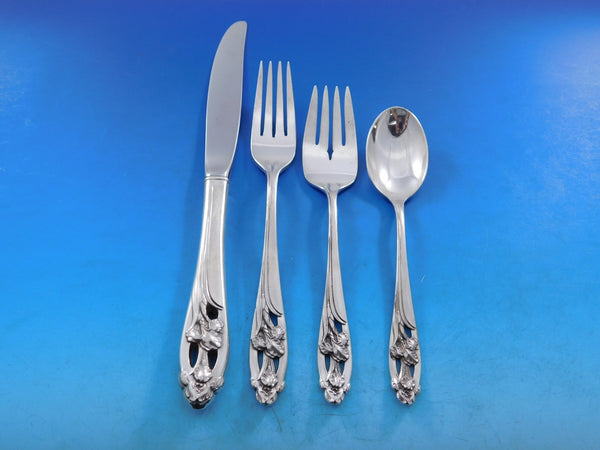 Silver Iris by International sterling silver flatware set with unique pierced handle, 82 pieces. This set includes: