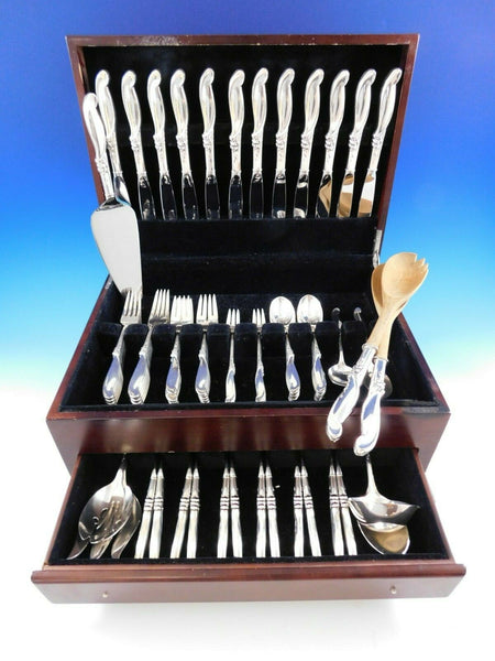 Silver Melody by International sterling silver Flatware set with cool modern shaped handle, 82 pieces. This set includes: