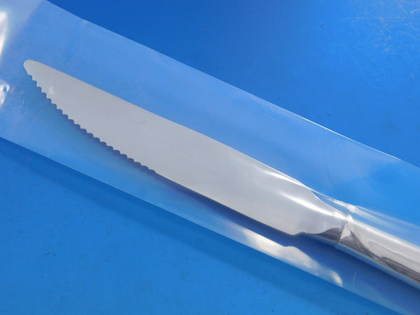 Silver Rhythm by International sterling silver hollow handle with stainless serrated blade Steak Knife Custom Made, 9 1/4". It is not monogrammed and is in excellent condition.