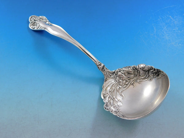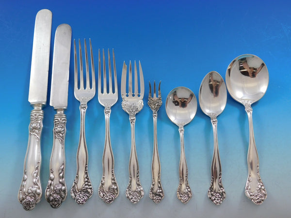 Rare Stratford by International, circa 1902, sterling silver Flatware set with Art Nouveau carnation motif, 108 pieces. This set includes: