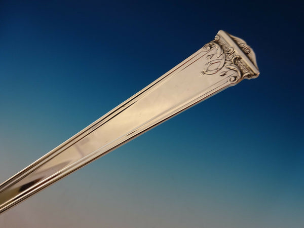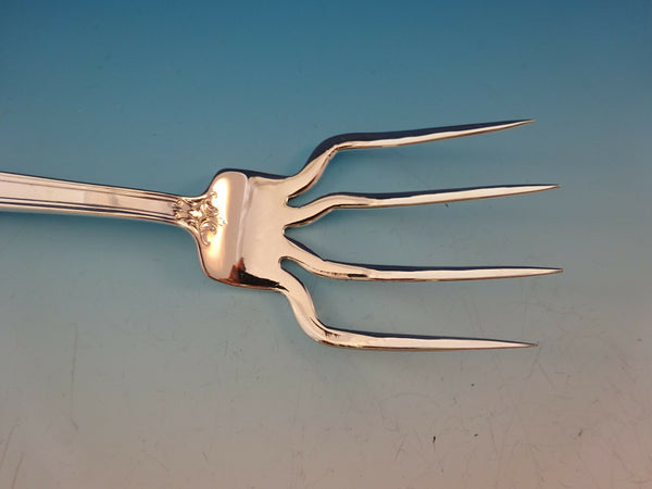 Sterling silver custom made Hot BBQ Beef Serving Fork with splayed tines, 7 1/2" , in the pattern Trianon by International. It is not monogrammed and is in excellent condition. This all-sterling serving fork is perfect for serving hot meats such as brisket, ribs, roasts, and more!