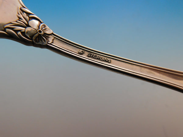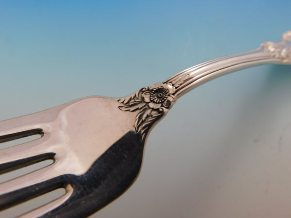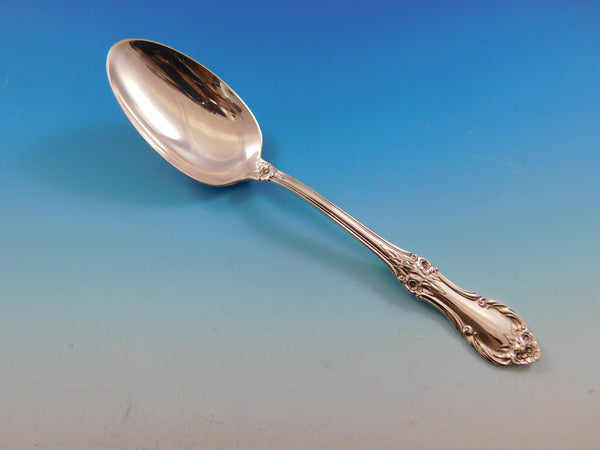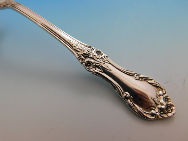 Gorgeous Dinner Size Wild Rose by International sterling silver Flatware set - 90 pieces. This set includes:12 Dinner Size Knives, 9 5/8" 12 Dinner Size Forks, 7 3/4" 12 Salad Forks, 6" 12 Teaspoons, 5 7/8" 12 Cream Soup Spoons, 6" 12 Flat Handle Butter Spreaders, 5 3/4" 12 Cocktail Forks, 5 1/2" 1 Gravy Ladle, 6 1/4" 1 Serving Spoon, 8 1/4" 1 Cold Meat Fork, 7 3/4" 1 Lemon Fork, long handle, 6" 1 Pie Server w/stainless blade, 10 1/4" 1 Berry Spoon, all-sterling, 9 1/4" Includes bonus brand new storage chest - styles vary.