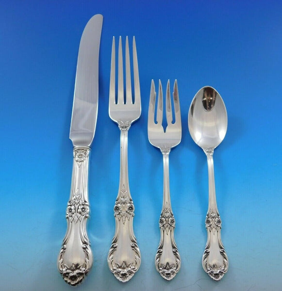 Dinner Size Wild Rose by International sterling silver Flatware set, 79 Pieces. This set includes: