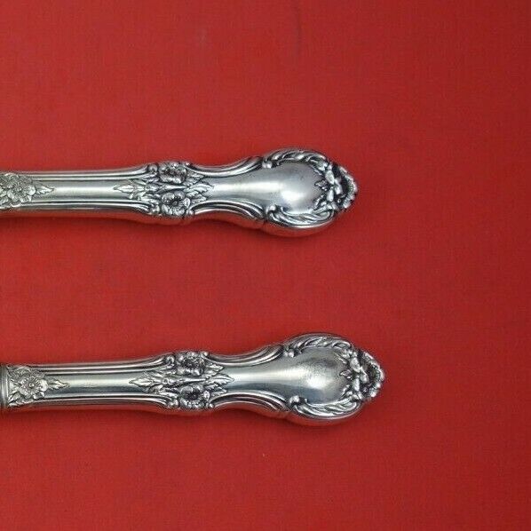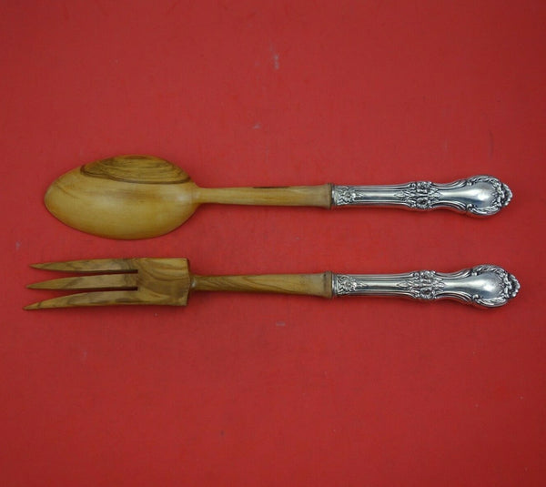 Sterling silver hollow handle with wood implements Salad Serving Set 2-Piece 11 1/8" in the pattern Wild Rose by International. It is not monogrammed and is in good vintage condition as shown in the photos.