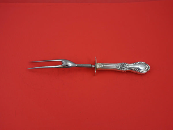 Sterling silver original hollow handle with stainless implement Steak Carving Fork, with guard 8 3/4" in the pattern Wild Rose by International. It is not monogrammed and is in excellent condition.