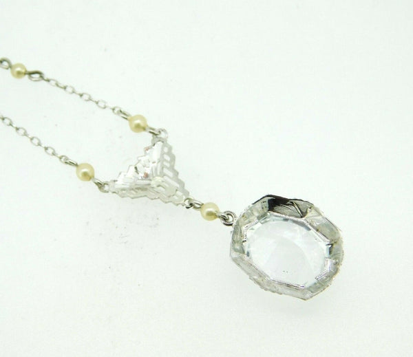 Art Deco 10k White Gold Filigree Aquamarine Pendant Pale Ice Blue (#J5026)