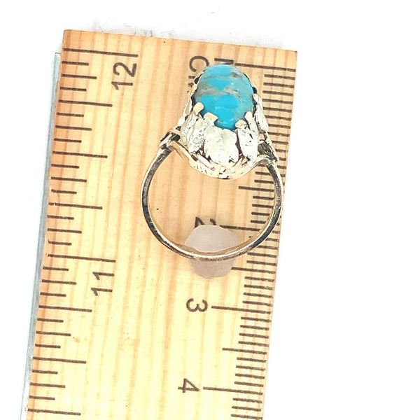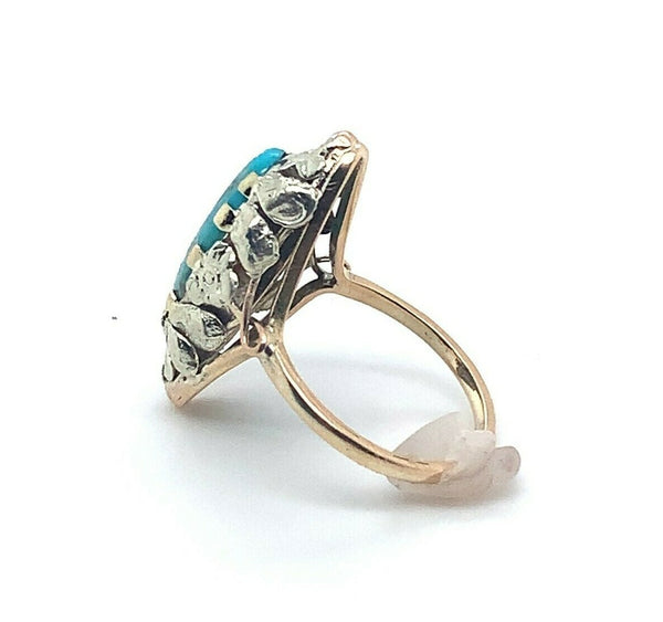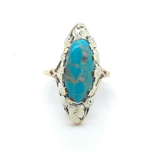 14k Gold Arts and Crafts Genuine Natural Turquoise Ring Applied Leaves (#J5214)