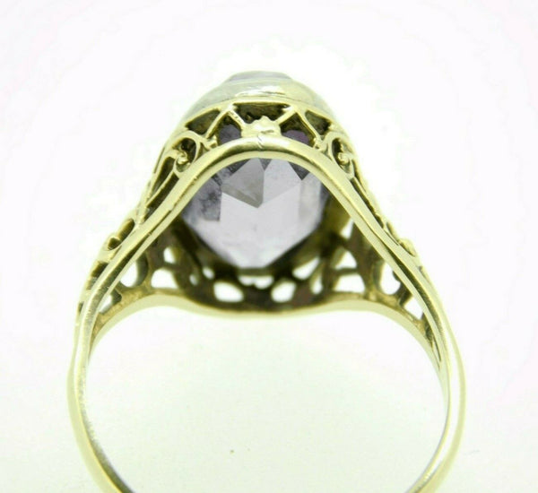 Art Deco 10k Yellow Gold Filigree Genuine Natural Amethyst Ring (#J4423)