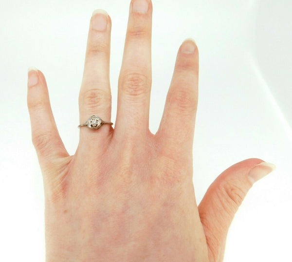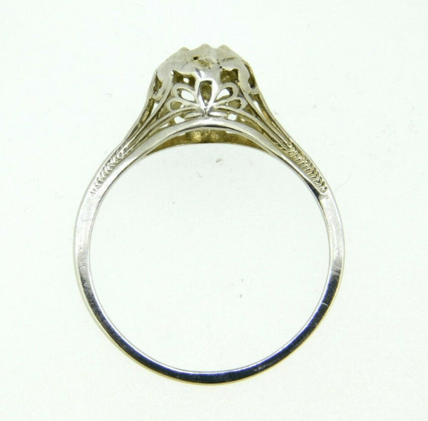 Art Deco 14k White Gold Genuine Natural Diamond Filigree Ring .10ct (#J839)