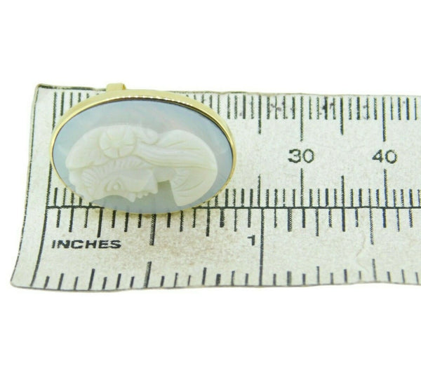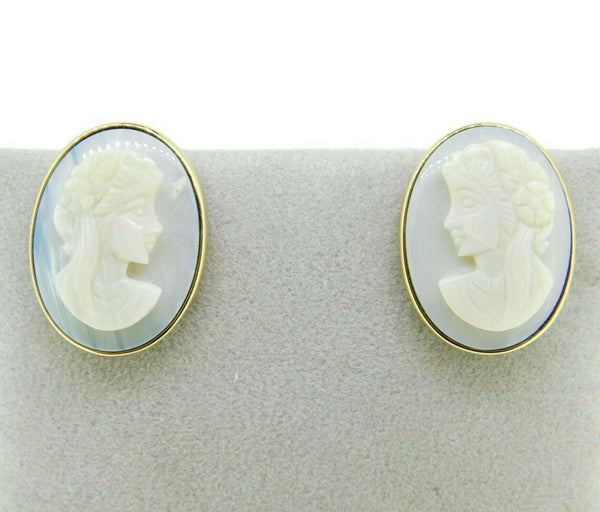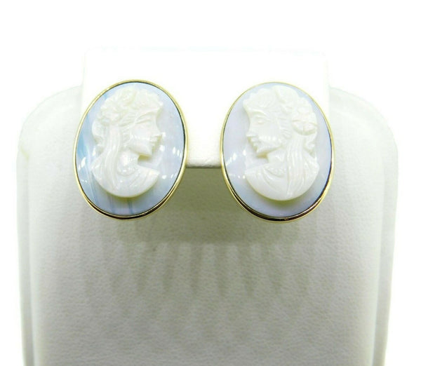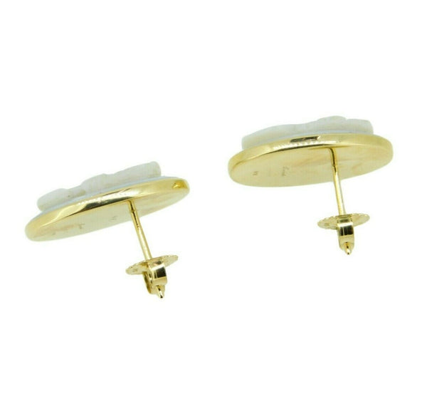 14k Yellow Gold Carved Genuine Natural Opal Cameo Earrings (#J3020)