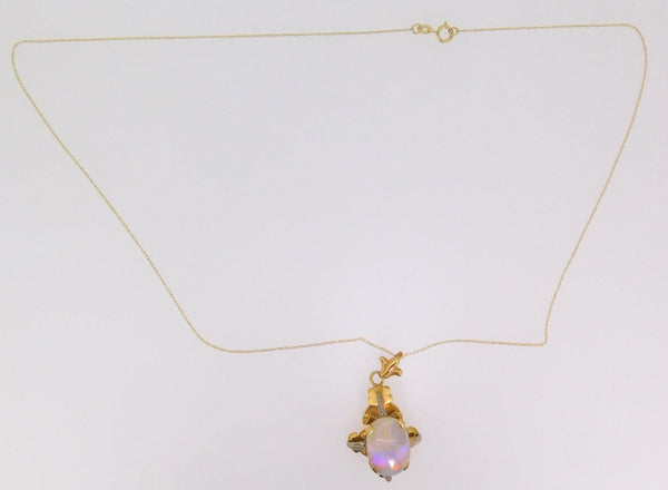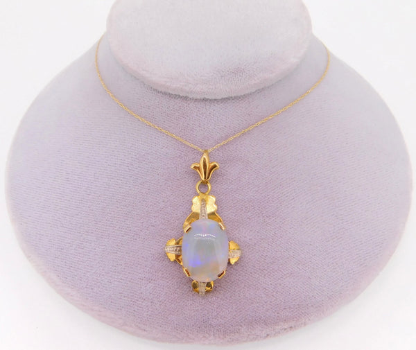 Vintage 18k Oval Genuine Natural Opal with 14k Chain (#J3908)